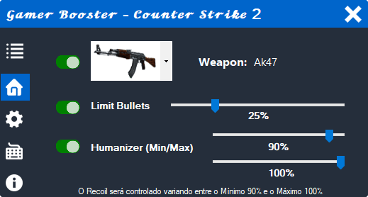 -Humanizer: através dessa ferramenta você pode randomizar em % o Controle de Recoil o quanto quiser, deixando-o mais Legit possível (Humanizado) e menos robótico.